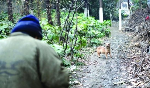 进桥洞后,老人拄着拐棍到一旁的房门前开了门。一下子从门里跑出了十多条狗,一边摇尾巴一边围着老人舔。把汤水倒进一个大盆后,狗立刻围上去争食。