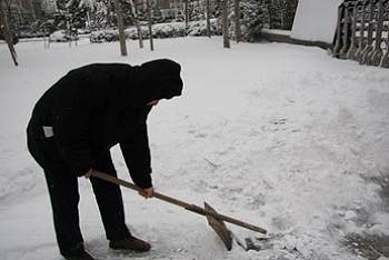 老人今年63岁,就住在该小区内。据老人介绍,前几场雪后,积雪落到地面直接冻住了,想扫雪也没法扫,尤其是这个斜坡,市民骑电动车、自行车路过时必须经过,“上次下雪后,就有居民推着电动车在斜坡上摔倒了。”老人说,退休后没什么事,早上起床就拿着铲子来除雪了。