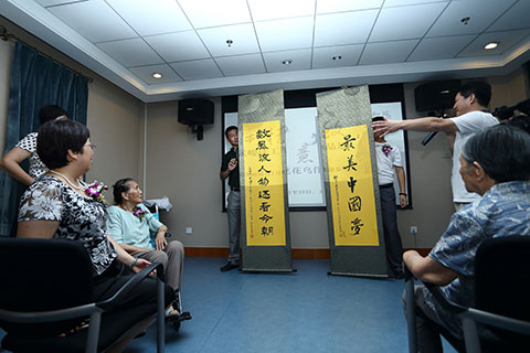 这是第二位在双井恭和苑举办个人画展的老人——张峻珠。2013年7月5日,80多岁的张峻珠在双井恭和苑<红房子>电影院举办了个人工笔画展启动仪式。现场高朋满座,老人的众多亲朋好友、战友、晚辈,以及恭和苑内的左邻右舍纷纷前来祝贺并参观,每个人都表达了对她的祝福。张奶奶回忆起过去的生活与情谊,又提到了现在恭和苑安逸充实的生活,满是感动与开心。