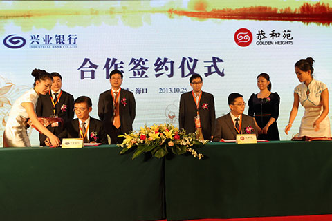2013年10月25日,恭和苑与兴业银行在海口恭和苑举行了“爱绽放金彩”为主题的新闻发布会,将养老产业与金融产业的联手提升到战略高度。全国老龄办副主任吴玉韶、中国老龄科研中心副主任党俊武出席了会议,并就养老服务与金融服务的结合分别发表了看法。
