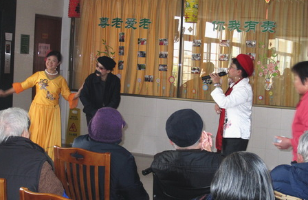 1月14日,一场特别的文艺表演在荔湾区西塱敬老院举行,这是广东省文化文化促进协会霞韵演艺团慰问演出,慰问团的演员们表演的节目获得现场掌声阵阵,笑声不断,霞韵演艺团慰问团不仅带来了文艺节目,更是带来了阳光积极的精神,让老人们享受了丰富多彩的文化大餐,让他们的生活更精彩,更充实。台下的老人时而跟着音乐打着节拍,时而鼓着掌叫精彩,大家其乐融融,营造“和谐大家园”的好局面。
