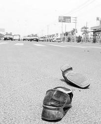 事发昨日10时15分许,记者在现场看到一只皮鞋和一顶褐色帽子,目击者阿军说都是被撞老人的。