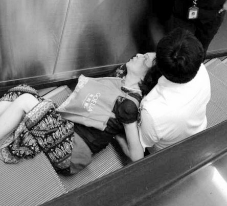 7月24日9时30分,为了护住要跌落扶梯的行李箱,一位大姐撞到了另一位站在扶梯上的六旬老人。老人滚落后高声呻吟引来数人帮助,可这位撞人的大姐却连声对不起也没说就离开了。经医生诊断,老人尾椎有裂缝,后背和前胸软组织受伤。