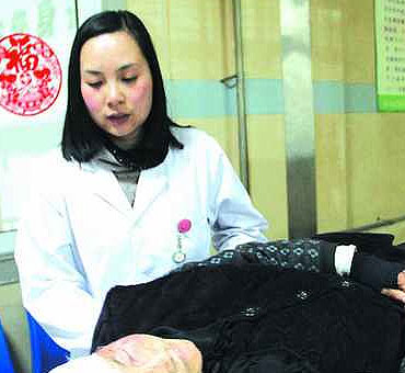二医中山路门诊部的护士在精心护理车祸中受伤的老人。 记者梅闻摄
