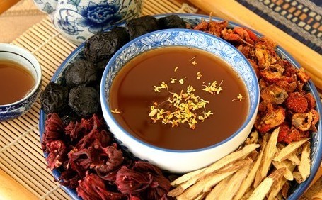乌梅100克,山楂100克,甘草10克,糖桂花5克,冰糖适量。