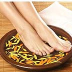 睡前用中药牛膝﹑当归﹑磁石等煎水泡脚,也可以用热水加白醋泡脚,每天1次,每次30分钟为宜。将煎好的中药(1000毫升)加热至70℃,倒入盆中,把脚搁置在脚盆边熏,要注意防烫伤。待药液温度降至38℃~42℃左右时,把双脚伸进盆中,双脚来回搓洗,不断按摩双足底的涌泉穴,直至感到穴位酸胀为止,然后擦干药液。