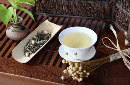 泡法:菊花、金银花、茉莉花放入茶壶,加入热开水,5分钟后便可饮用。
