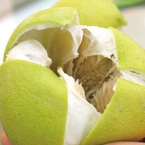 柚子皮的食用方法很多,为避免其味道苦涩,需先削去青黄的表皮,留中间柔软的白色海绵部分食用。