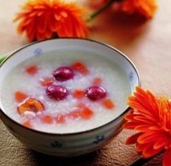 山楂粥:山楂30~45克(或鲜山楂60克),粳米100克,沙糖适量。将山楂煎取浓汁,同粳米同煮,粥将熟时放入沙糖,作点心热服。不宜空腹及冷食。