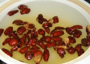 制法:开锅后放入枸杞子、红枣、粳米,炖煮至红枣烂熟即成。