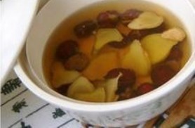 轻度风寒感冒喝红糖姜汤:生姜10克切片加水煮沸,加红糖15克趁热服。