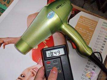 电吹风作为其中的一员,自然也不例外。每次洗完头发后在享受温柔暖风的时候,您可能不会想过,这件小小的电器每秒的耗电量其实是很大的,功率可以达 到1000瓦,甚至高过了电冰箱这样的庞然大物的工作功率。作为一件大功率的电器,相比于依靠一块小小的电池以毫瓦级别功率工作的手机,或者相比于工作时 大门紧关来屏蔽辐射的微波炉,电吹风工作时辐射出的电磁场强度超出这些“辐射重点嫌疑对象”并不出奇。