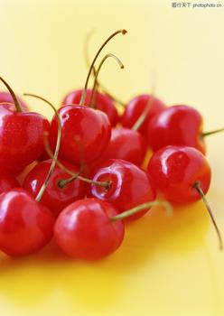 樱桃:我们对于它的回忆大多是奶油蛋糕上的惊艳一现或者是糖水罐头里浩浩荡荡的一群。新鲜樱桃,色泽艳丽,质感丰实。它的铁含量尤其高,每百克可达6~8毫克,具有促进血红蛋白再生及防癌的功效。樱桃中铁含量很高,是特别适合女性吃的水果,有补虚养血的功效。