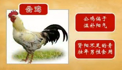公鸡偏于温补阳气,适合肾阳不足的青壮年男性。
