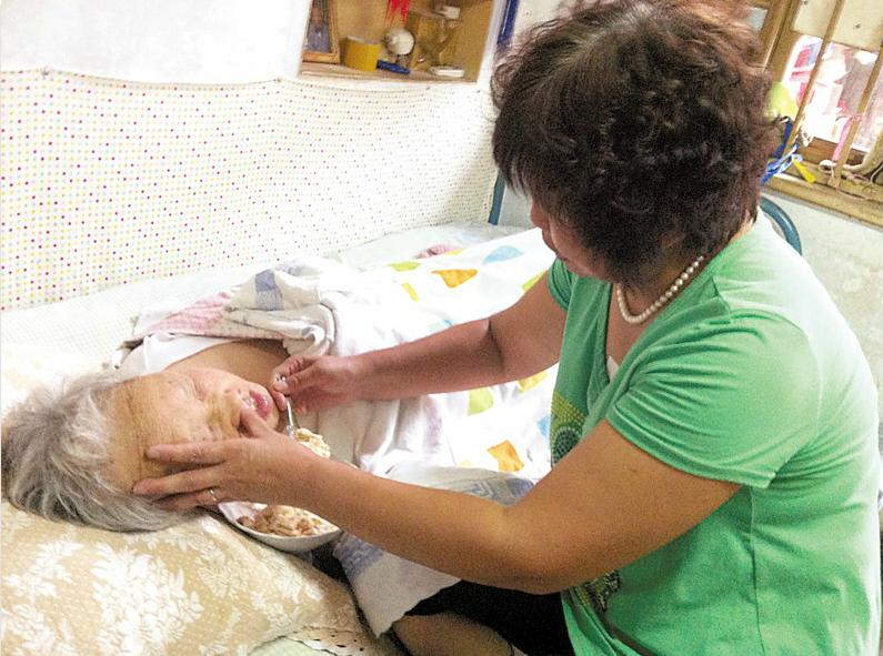 3、将脏污床单卷起。塞入老人身下,扫净垫褥上的渣屑。