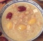 制法:将银杏肉,粳米掏净,同入锅中,加水适量,置武火上烧沸,继用文火煮熬成粥,放入白糖,拌匀即成。
