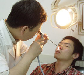 各类鼻沾膜炎可采取简便的坐位滴鼻法。头后一侧倾斜并向后稍仰于该侧,滴入药液2~3滴,等药液弥散均匀分布于鼻粘膜表面,然后按同法再滴另一侧鼻腔。如系鼻窦疾病,则以卧位滴鼻法较理想。仰卧,垫肩,头后仰下垂于床沿(头顶朝地、鼻孔朝天),每侧鼻腔各滴药5~6滴,并略向患侧倾斜转支,滴完药后再将炎性鼻涕擤出。