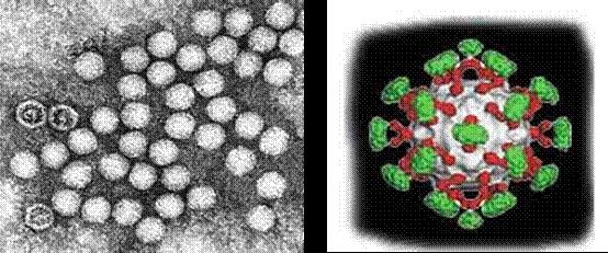 柯萨奇病毒的最大特点为能使小白鼠致病,根据其乳鼠致病的不同,可分为A、B两大组。A组病毒至今已发现23个型(A1~24型,其中23型已归入埃可9型),此组病毒可使乳鼠发生广泛的骨骼肌肌炎和坏死,引起弛缓性瘫痪。但大多不易在组织培养中分离。B组病毒已发现6型(1~6型),可使乳鼠发生局灶性肌炎及棕色脂肪坏死、心肌炎、肝炎、脑炎、胰腺炎等,引起肢体震颤和强直性瘫痪,B组病毒可在组织培养中分离。