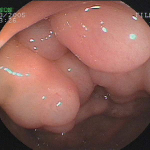 肠道气囊肿如与消化性溃疡和幽门梗阻有关,则气囊肿位于空、回肠;如与肺部疾病有关,除肠系膜肝胃韧带外,则主要聚于回盲区,如在结肠镜后发生者则集中于结肠部位。位于浆膜下者类似肥皂泡状或淋巴瘤样,可单个分散存在或簇状,大小自数毫米至厘米不等,位于粘膜下者外观不易看到,受累肠管触诊犹如海绵样,肠壁断面呈蜂窝状。囊肿壁薄,内衬以单层扁平或立方上皮细胞,似符合扩张的淋巴管,囊肿内含气体,彼此间并不相互沟通,气体成分除氧含量少,可能与吸收有关外,余与空气相仿。