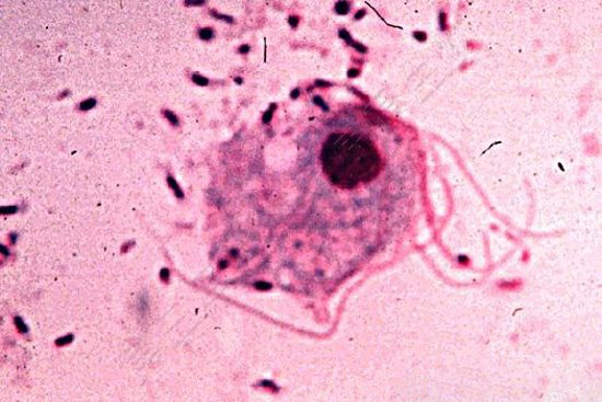 人毛滴虫可引起肠黏膜充血、水肿与炎症反应,黏膜上皮细胞坏死脱落,淋巴滤泡小脓肿形成。当宿主抵抗力下降时,在肠道共生细菌存在下,虫体大量繁殖,黏膜损害明显加重,腹泻次数增多。毛滴虫的活跃运动,造成强烈的机械刺激,引起腺体分泌亢进。虫体具有较多的溶酶体,内含丰富的酸性磷酸酶等水解酶。大量虫体释放的溶酶体酶,可使肠黏膜上皮细胞变性、坏死,出现腹泻。