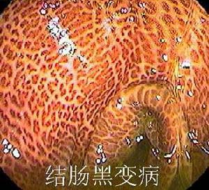 此外有人认为年老体弱,胃肠运动功能减退,粪便在肠道停留时间过长也可能与MC有关。还有人提出年龄亦影响MC的发生,其中>60岁的发病率显著高于其他年龄组(P<0.01),发病率甚至高达88%。至于MC与结直肠癌和腺瘤、息肉的关系各家文献报道并不一致。国内外报道结肠癌伴发率分别为5.4%和5.9%,结肠息肉伴发率分别为55%和19.2%。Siegers的前瞻性研究表明,有MC则患结直肠癌危险性增大,Tanaka等应用1-羟基蒽醌成功地建立了大肠肿瘤的动物模型。国内的一组资料提示MC患者中结肠息肉的发病率为36%。一份对14篇回顾性研究的总结指出,服用蒽醌类及其他泻药与结直肠癌之间的关系有统计学意义。但Nusko等的一项病例对照研究却显示服用蒽醌类泻剂,结肠黑变病不会增加结肠腺瘤和结肠癌发生的危险性。由于结肠息肉是明确的癌前病变,虽然目前对于结肠肿瘤与MC是伴发还是因果关系还不能确定,但警惕患MC后有可能发生结肠癌是必要的。总之,MC是一种与长期便秘及服用泻药有关的色素沉着性疾病,其色素来源尚不清楚,结肠黑变病现象是便秘本身所致,还是长期服用刺激性泻药的作用所为,或两者因素共同作用的结果,以及与结肠癌、结肠(绒毛状)腺瘤和溃疡性结肠炎的明确关系尚待进一步前瞻性研究。