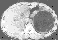 1.寄生虫性囊肿 由棘球绦虫属的包虫囊构成,由幼虫经血进入脾内发育生长成寄生虫性囊肿,囊内壁无衬覆上皮,囊内含寄生虫虫体或虫卵及坏死组织, 2%的棘球蚴病中可有脾包虫囊肿,常与肝、肺棘球蚴病并存,在我国北方畜牧地区可见。