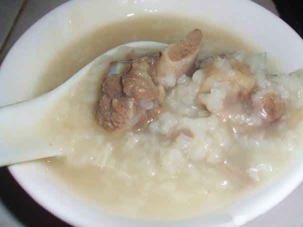 制法:将鲜羊骨洗净敲碎,加水煎汤,取汤代水,同粳米煮粥,待粥将成时,加入细盐、生姜、葱白调料,稍煮二三沸即可。