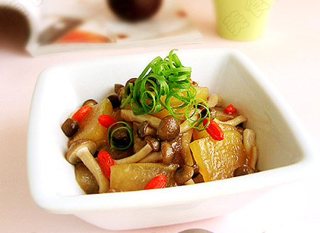 制法:三者切碎块,文火煮1小时至三者均烂即可。