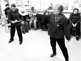 林新榕向记者介绍说,两位老人练的是健身项目柔力球,对腰腿、肩肘、视力保健都有好处。除此之外,她教给老人们一周做三次的回春医疗保健操也很受欢迎。这些老人都住在附近,步行一般不超过10分钟,有的只相当楼上楼下的距离,所以,每每听到站点里有针对老年人组织的活动,他们都一呼百应,兴高采烈地结伴过来。