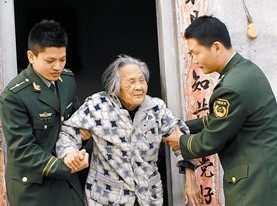 “这群孩子是我的眼睛,他们时时搀扶着我的手臂,春节也过来照顾我。如果少了他们,我真不知该怎么办呢。”说这句话的老人叫王亚儿,今年92岁,是汕头市澄海区新溪镇七合村人,丈夫早逝,膝下无儿无女,因患白内障导致双目失明。她话中提及的“这群孩子”就是广东汕头新溪边防派出所的官兵,他们帮扶照看老人至今已有8年多了。