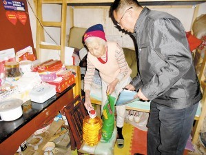 志愿者看望孤寡老人。