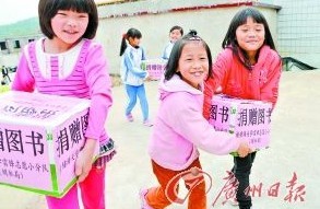 明星小学的学生们高兴地捧着黄埔海关学雷锋志愿小分队捐赠的图书。