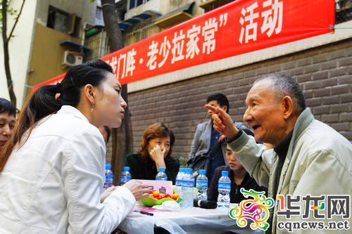 抬出大方桌,摆上糕点水果,上清寺街道学田湾社区聚心苑小区内异常热闹。在这场名为关爱空巢老人“院坝龙门阵·老少拉家常”的活动中,辖区12位空巢老人被奉为上宾。陪伴他们的,是来自街道和对口区级部门的干部、志愿者们。一旁,社区卫生服务中心的医护人员还摆出椅子,为老人们免费按摩、量血压。