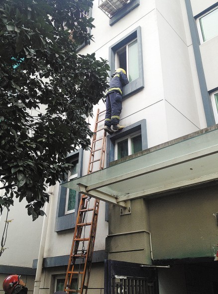 出警的消防队员说,这种情况,他们和民警、居委会工作人员、物业人员都习惯了。