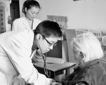 刘东是道里区通江社区卫生服务中心的一名医生,在他的片区内共有1 4名需要提供居家养老医疗服务的老人,于惠忠就是其中一员。每周日是刘东上门为老人进行医疗服务的日子。近日,记者跟随刘东一起来到于惠忠家。老人摸索着把刘东和记者让进屋内。“于大娘年纪大了,患有严重的青光眼,鉴于家庭贫困,所需的眼药我们社区医院全部承担了。”刘东说。“前几天不是刚刚来过吗,我身体没问题,你们忙,不用总惦记我。”于惠忠说。“您这么大年纪了,一个人住,血压还高,我不放心,过来再给您量量。”说着,刘东熟练地拿起屋内的一个小板凳放在床上,并从柜子中拿出一个垫子放在凳子上,将血压计放在凳子上。“170、90,和前几天测量的数值差不多,大娘您这血压还是高,还得坚持吃药,药量还都记得吧。”看到于惠忠的血压值,刘东有些着急。他拿出随身携带的居家养老服务入户巡诊档案边记录边对于惠忠说。于惠忠告诉记者,多年来一直是她一个人居住,“我一个人没有收入来源,每个月就靠几百元的低保过活,以前有个头疼脑热的也不去医院,可自从几年前小刘大夫上门给我进行居家养老医疗服务之后,我也感觉身体一天比一天好了。”