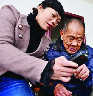 昨日,西塞山区大智路社区工作人员在教85岁的空巢老人饶啟礼使用居家养老手机。为给老人提供便利,市民政局向全市每个社区赠送10部手机,发放给有需要的老人,当他们遇到困难时,可以一键拨通居家养老服务中心的电话12349,接线人员获得信息后立即通知医疗机构、救助机构及老人家属进行及时救助。