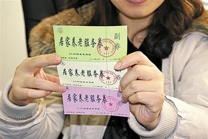 记者看到,全新的居家养老服务券分黄红绿三种颜色,分别代表1小时、1.5小时、2小时服务时间。一张完整的服务券分正券和副券,中间以虚线相隔并盖有专用章以防造假。民政部门每月为自理老人、半自理老人、不能自理老人分别发放30小时、45小时、60小时相应额度的服务券。老人若对服务人员表现满意,则可沿虚线将正券撕下交给服务人员,自己保留副券;若不满意则不支付服务券,并可拨打服务券背面的服务监督电话投诉。服务人员凭服务券到服务机构领取相应报酬,月(季)末区居家养老服务中心凭服务对象手中未兑付的服务券(当月有效)扣除服务机构相应服务费用,并以此监督服务机构的服务质量。