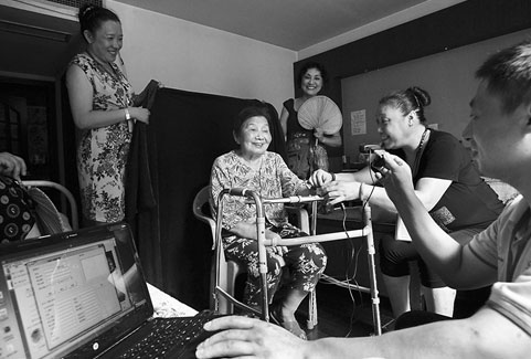 近日,在沙坪坝区洪恩敬老家园,小龙坎街道新村路社区的党员干部将“办公桌”搬到老人床边,将行动不便的85岁老人费定贞的信息录入市养老待遇领取人员指纹认证系统。