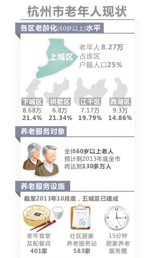 杭州比全国平均水平提前11年进入老龄社会,以去年年底数字为限,全市有60周岁(含)以上老年人127.89万人,占户籍人口18.26%。