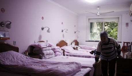 院里办公室有监控设备实时反映老人的动向,“老年人的身体和精神状况变化起来是很快的。有些老人我们看着从健康正常到逐渐失去神智,变得糊涂不清、失去自理能力,往往只有短短几个月的时间。”院里唯一的男性护工、60岁的钱伟仁说,“有的失智老人不认得人,不知道吃饭,也不知道上厕所了。一个转身,不是在消防器具上拉了一泡屎,就是拿着排泄物东一把、西一把地当雪球似的扔得到处都是。”护理工作不轻松,专门护理失智老人的护工不仅要帮着穿衣、洗澡、喂吃饭,更需要多一份的关照和理解才能使失智老人能像常人一样穿得干净整洁,有尊严地养老。