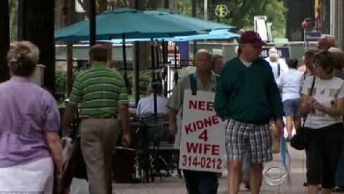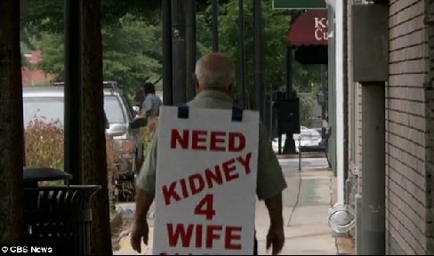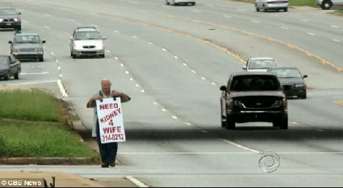 拉里告诉CBS记者,妻子杰米在等待捐肾的名单上,但是至少要再等3年的时间。他不能忍心看见妻子在等待中死去。所以在最后决定后,他走到了街上去向陌生人求肾,他不在乎别人怎么想,因为他答应妻子,要送给她一颗肾。