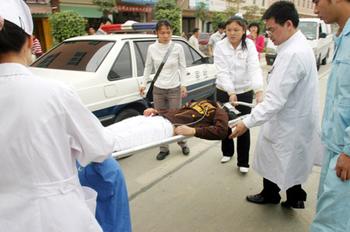 “我当时正要过马路,看见一个老奶奶用手捂着脸,手指间还有血迹。”目击者刘女士说,她和其他两位行人赶紧扶着老人在马路边坐下。老人看起来约70岁,身穿紫红色棉袄,下身是一条蓝色棉裤,戴着一顶螺纹帽子,头发花白。“老人当时已经说不出话,问什么都摇头。”刘女士等人拨打了120急救电话,并递上纸巾帮其止血。“当时老奶奶流了好多血,流出了将近一米的‘小河’,看着挺吓人。”20分钟后,急救车将老人带走送至武警第二医院接受检查和治疗。