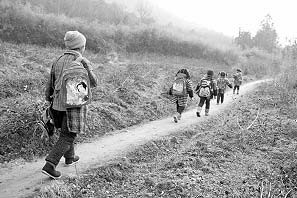 拍完照片,两位老人带着孩子,匆匆忙忙地往家里赶,他们还有活没干完,还要给孩子做晚饭。