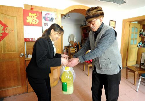 1月18日,廊坊市安次区居家养老服务中心工作人员来到86岁高龄的空巢老人汪克勤家,为他送去生活用品和刚出锅的饭菜。河北省廊坊市安次区在建设环首都绿色经济圈进程中,积极探索居家养老服务新模式,着力提升城市管理服务水平。他们建立了社区居家养老服务中心,下设3个街道养老分中心,26个社区居家养老服务站,50余家加盟单位,20余支志愿者服务队伍,为老人提供送餐、上门理发、陪同就医、代购物、代缴费等全方位的便捷服务。