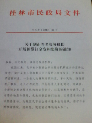 近日,网友“关爱”发帖说,桂林有养老院可以预交床位费,3~10万元不等。如果老人3年不入住,不但可以退还床位费,还可以获得国家给予的床位费补贴。