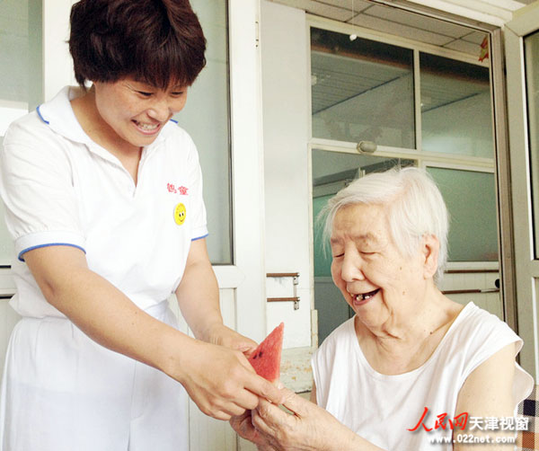 由于老年人体质较虚弱,长时间呆在空调房内容易造成身体不适。为帮助老年人解暑,鹤童养老院采用传统降温奇招,在院舍的每一个房间内放置大量冰块。同时,对 摆放冰块的位置也有明确规定,一般要将冰块摆在老人床铺底下的三分之一处。这样大量冰块产生的冷气可以减轻室内燥热感,帮助老人达到避暑的作用。工作人员 介绍,空调制冷容易使老人患上热伤风,而冰块制冷方式温和,老人不会感到不适。此外,养老院还为老人增加了给水次数和擦洗身体的频率,并根据夏季膳食特点 配餐,帮助老人安然度夏。