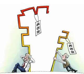 养老金占退休前工资的比例相差悬殊,前者退休可拿到在职工资的80%至90%,而后者退休后只能领到在职工资的40%至60%。