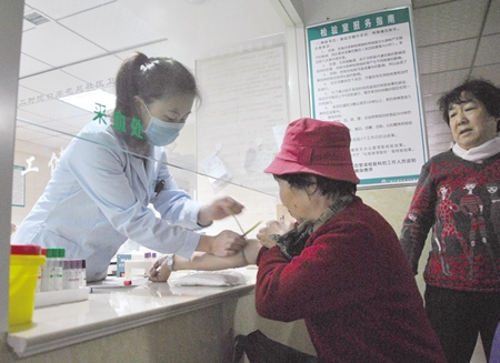 今年72岁的张淑贤是口岸社区的老住户了,正在等待抽血的她告诉记者,今年年初,社区卫生服务中心的工作人员就把体检通知贴到了小区里的单元门口,上个月她还接到了李劼的电话,提醒她和老伴儿来做体检。