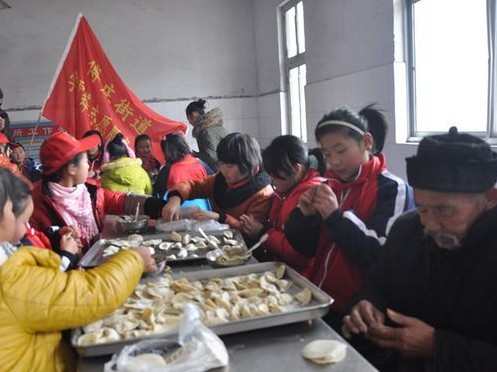 ——临沂汤庄实验学校志愿者冬至来临将“爱心饺子”送进敬老院