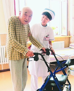 在康苑二楼的一个双人房间里,住着一位从太原来的高龄老人,89岁的赵老太太。老人是太原某玻璃厂的退休职工,有一双儿女。老伴去世后,她就和儿孙们住在一起。近几年,儿子、儿媳也年过花甲,患多种老年疾病,照顾赵老太太力不从心。赵老太太选择了北洸乡卫生院老人康复科度晚年。“外孙孝顺,给我挑了个养老的好地方。我在这里生活得很开心,工作人员照顾得很好。”赵老太太说。